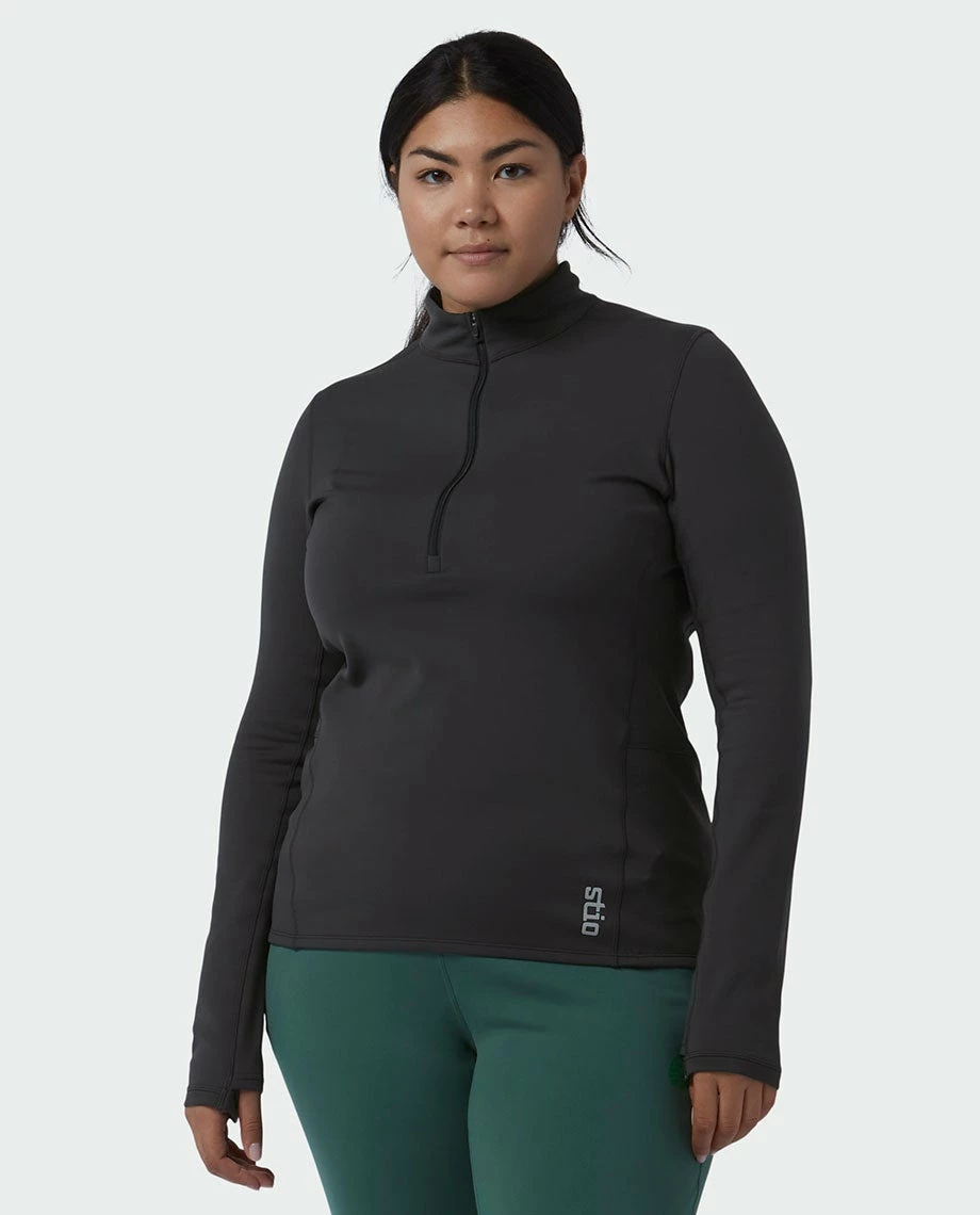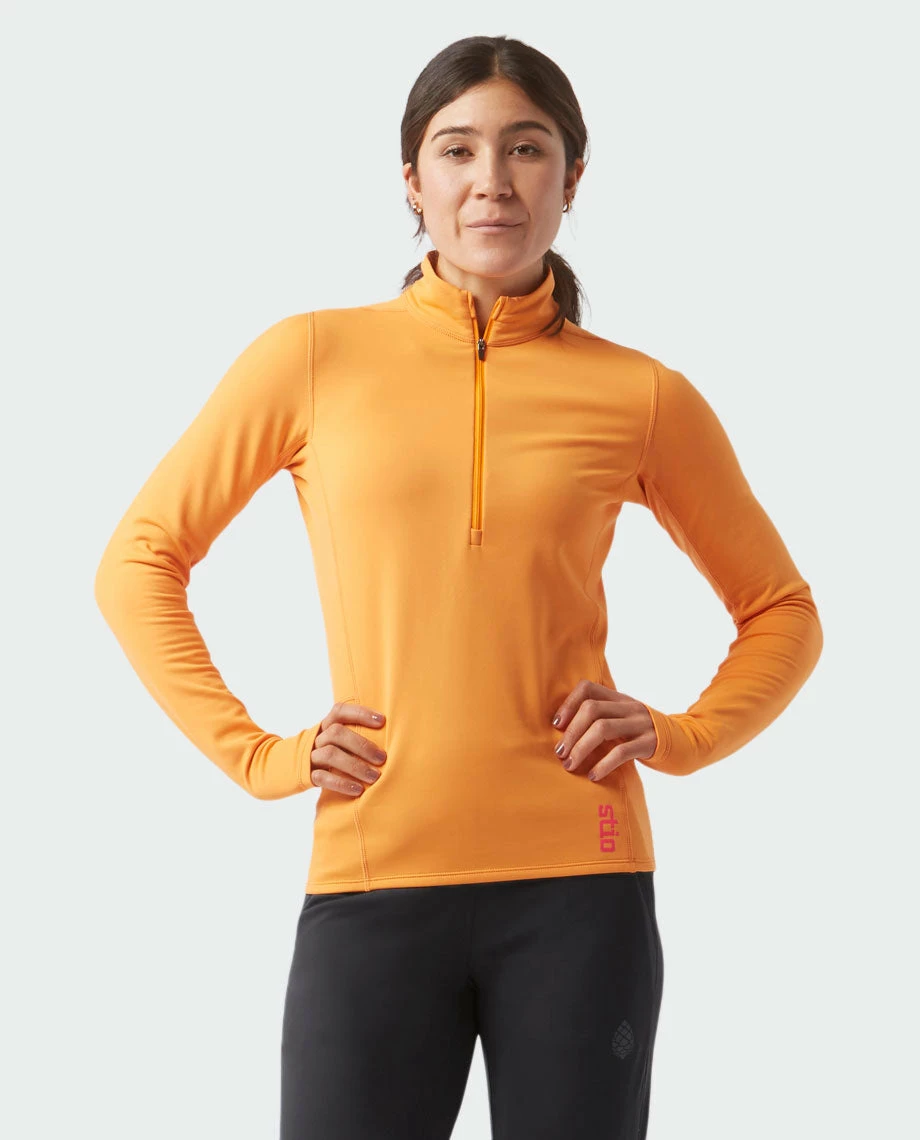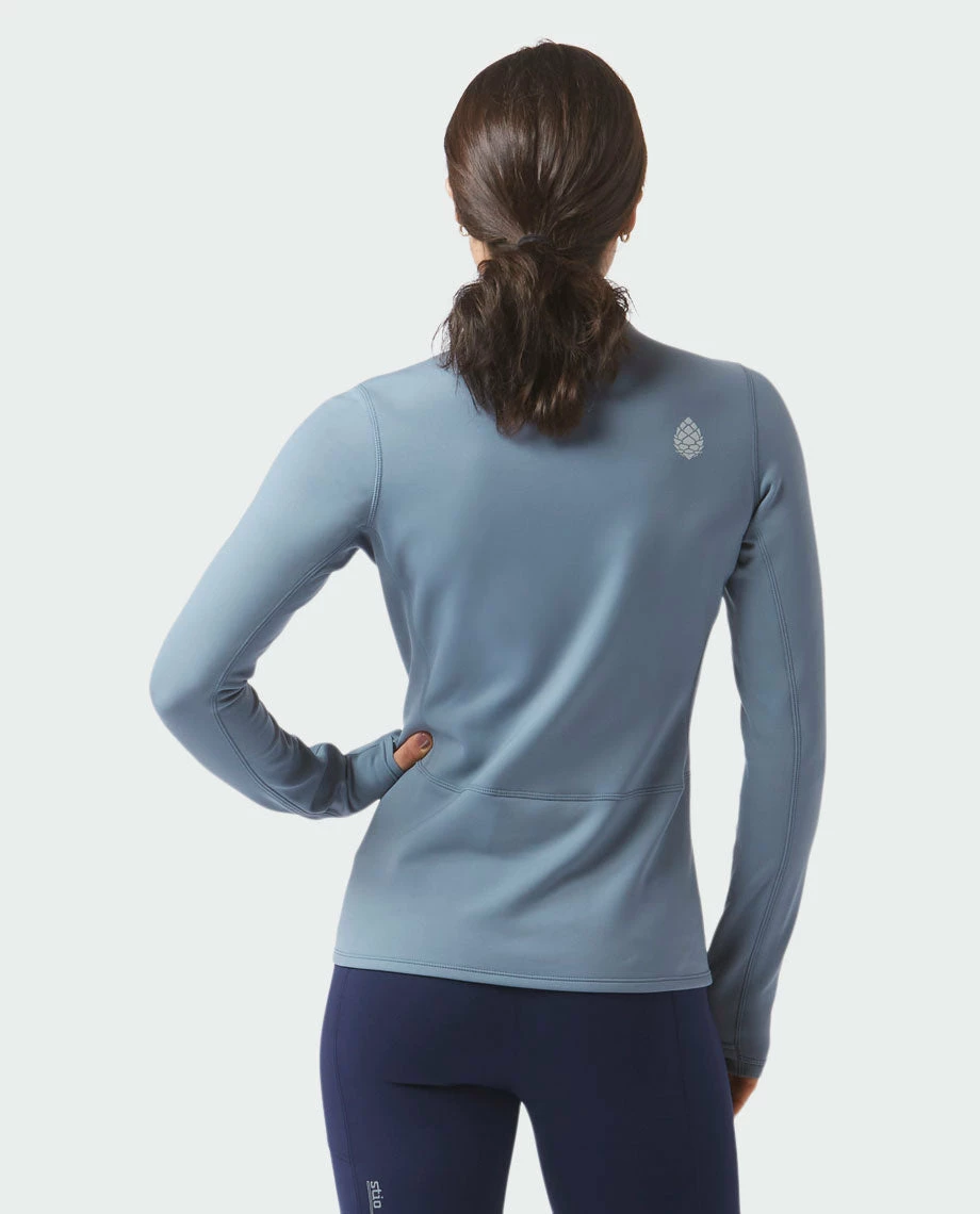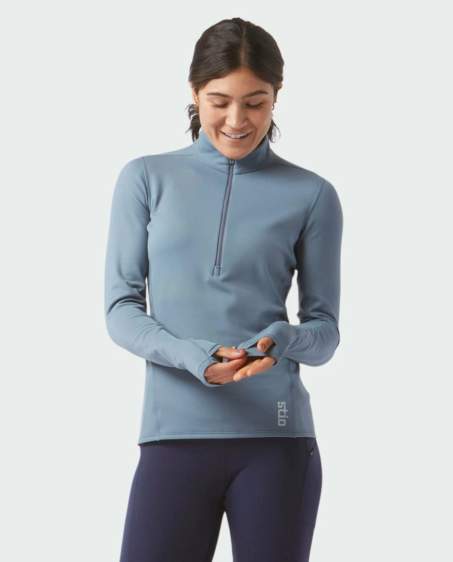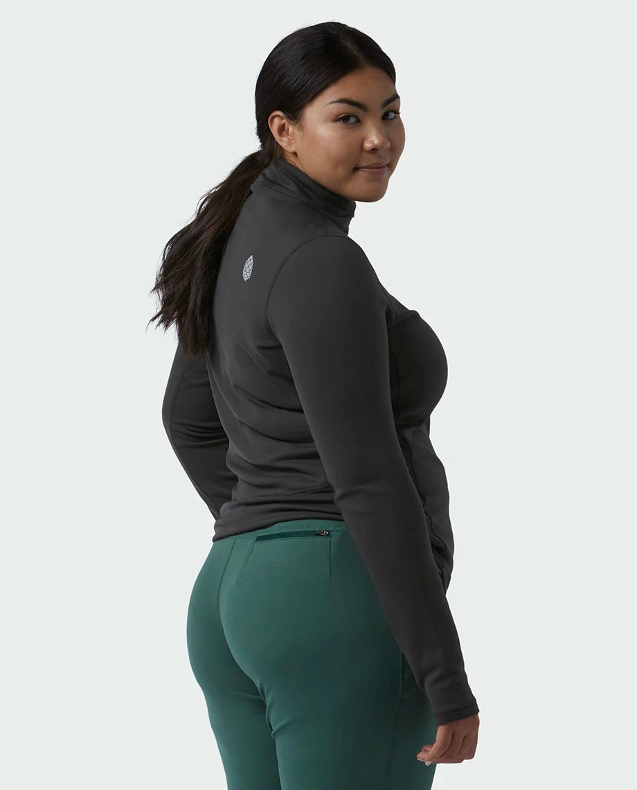 When pushing the pace during mountain workouts, our wicking, breathable and high-stretch half zip maintains comfort mile after grinding mile. Built with premium Karuishi® Stretch Fleece, the self-regulating material features integrated four-way stretch and a circular knit construction that creates both a smooth, resilient surface and a warm, fleecy interior. Integrated thumbholes keep arms down during reaching or stretching, while an inner security pocket stashes a key or a card when hitting the trail.