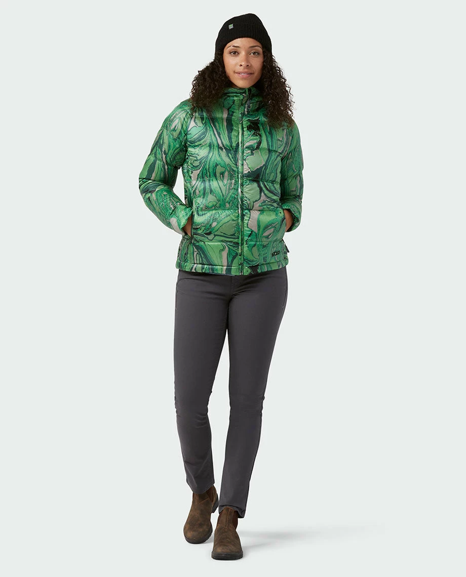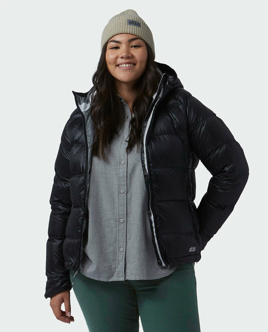 Cold weather doesnโt discriminate between town and country, and neither does our best selling Hometown Down Hooded Jacket. This ultra-warm jacket wraps you in supple, 800-fill goose down that is remarkably lightweight and also water repellent, thanks to the latest innovation in down insulation technology from our partners at ALLIED Featherโข. Our Illume Cireโข fabric adds a touch of sheen to the exterior and a DWR finish sheds the elements. Features a fully adjustable fixed hood, handwarmer pockets, and interior security and stash pockets.