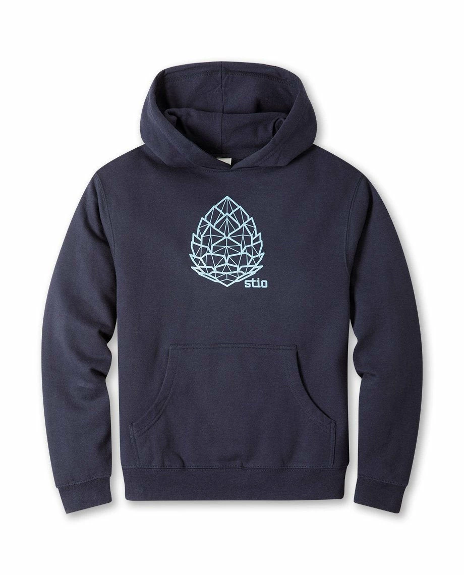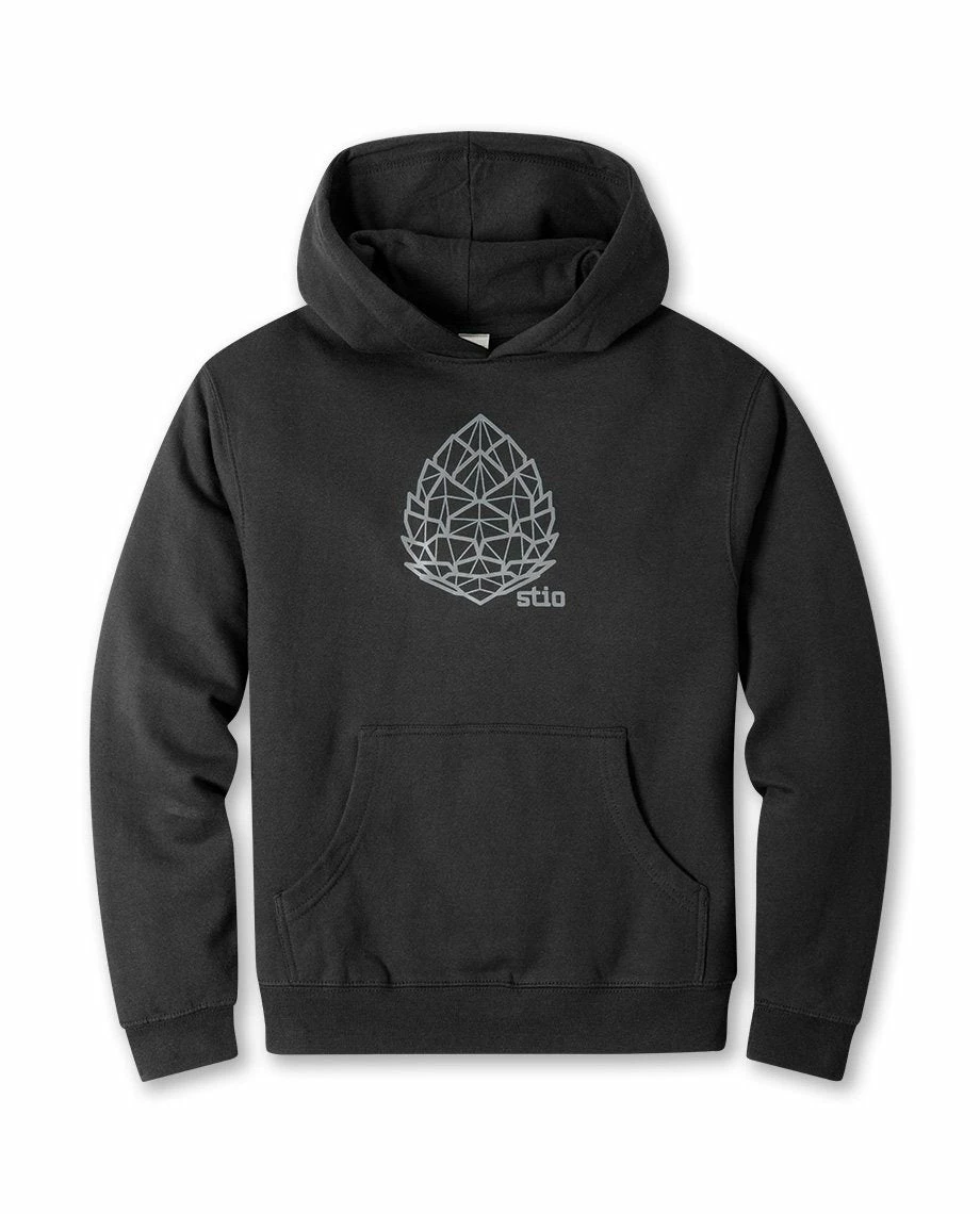 Stio’s logo is a whitebark pinecone, an important cog in the greater Yellowstone ecosystem of which we live. Custom geometric design printed on a comfortable cotton/poly hoodie.