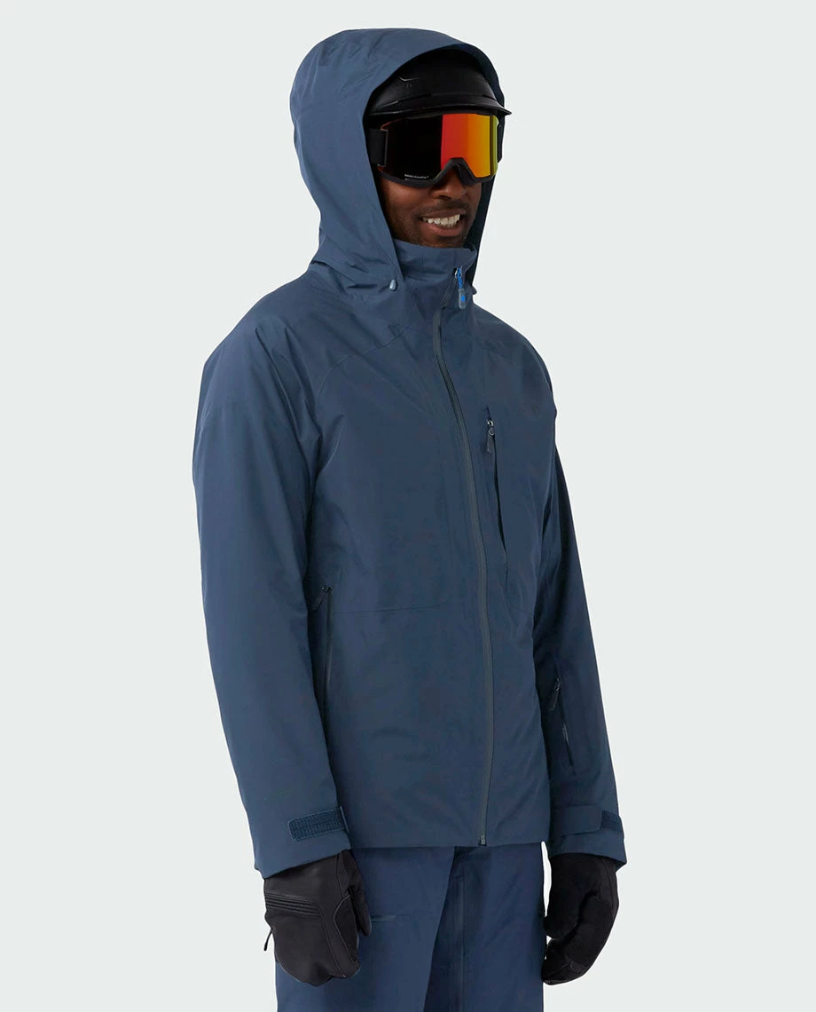 Pow waits for no man and our full-charge jacket is made for seeking, tracking and sending the best local stashes. The storm-day secret is an eco-responsible combo of recycled-content GORE-TEX 2L and PrimaLoft® Silver Eco, which match up storm protection with mid-winter warmth. Internally, the warmth is tailored with 80g in the core, 60g in the sleeves to give you the warmth you need without the bulk. A venting mesh back panel keeps it from running too hot. Equipped for first chair to last lap days with a dual-adjust hood, pit-zip venting, a pass pocket and a fixed snow skirt that snaps to our Doublecharge Pant.