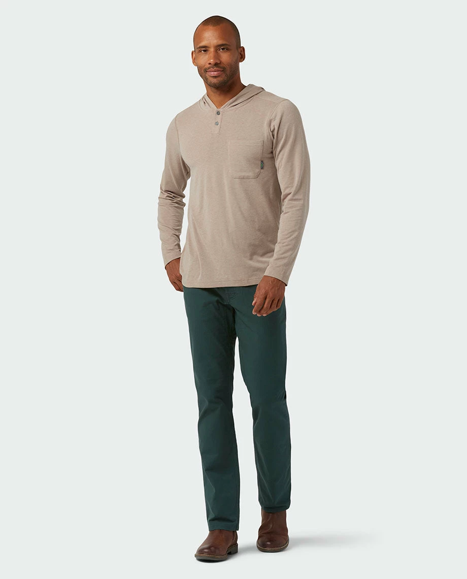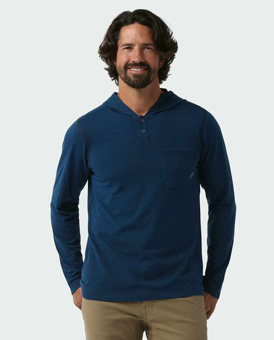 Active, athletic and infinitely casual, our all-season hoodie ranges from weeknight epics and long weekend travel to more social obligations. The key attribute in its make-up is drirelease®, a soft, stretchy and heathered fabric that dries 4x faster than cotton. That fiber-level foundation fits it to everything from late fall training runs or last light fishing to outdoor beer festivals. The hooded Henley style, patch-on pocket and two front buttons keep the vibe relaxed at any hour.