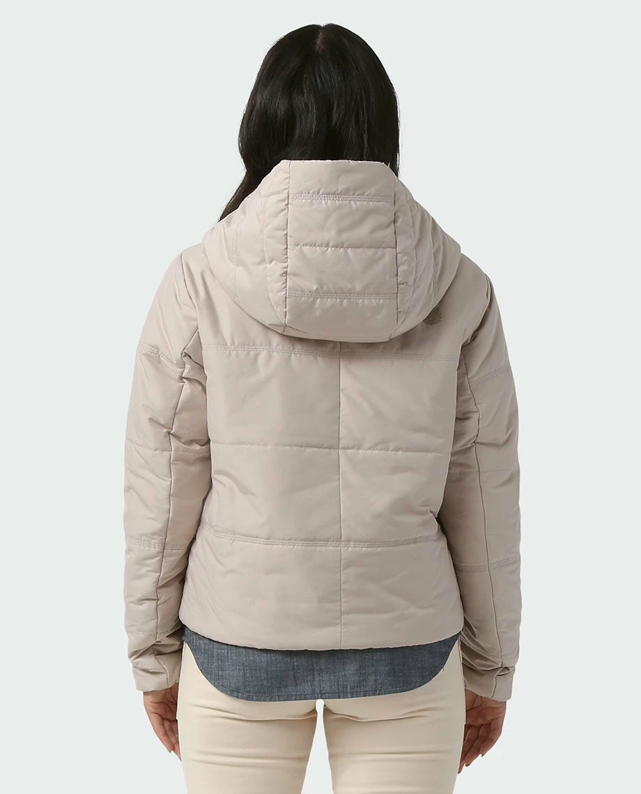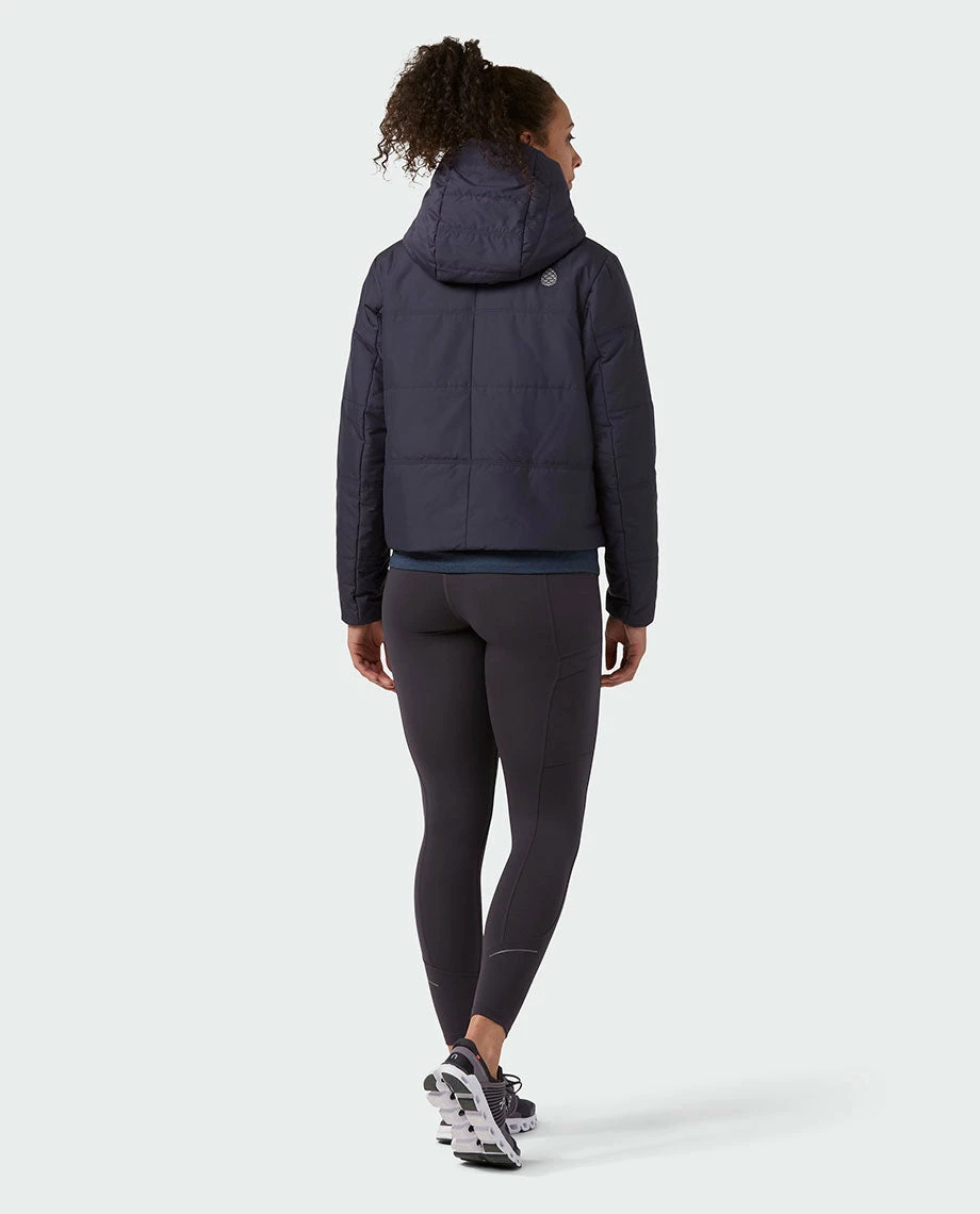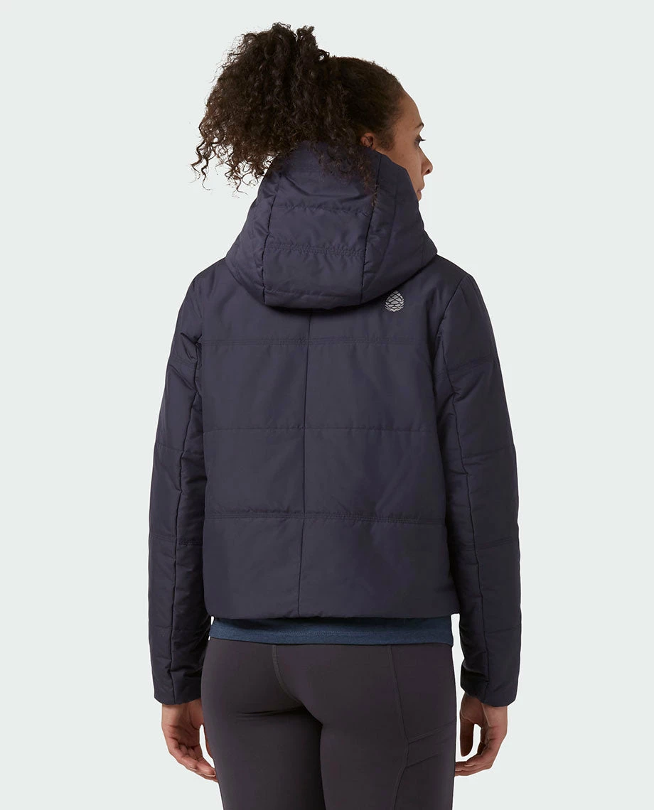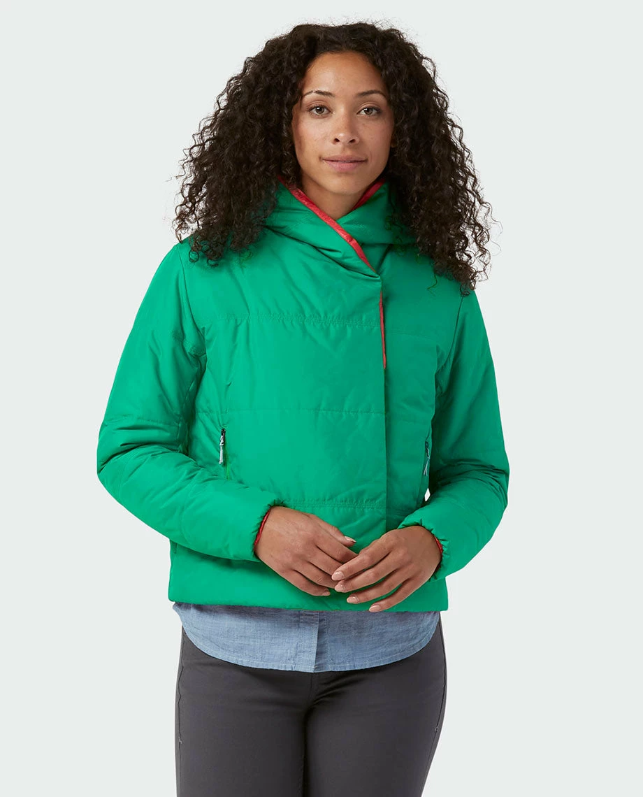 Where energetic style meets mountain chic, our new East Butte combines quilted insulation with intentional detailing. An aesthetic antidote to early fall frosts, the hooded jacket delivers an instant warming effect with PeakFillโข 50% recycled, synthetic insulation and expresses distinctive flair with an asymmetrical crossover placket and offset hidden zipper. An adjustable hem trims a straighter, mid-length fit and elevates any look, whether paired with pants, leggings or joggers.