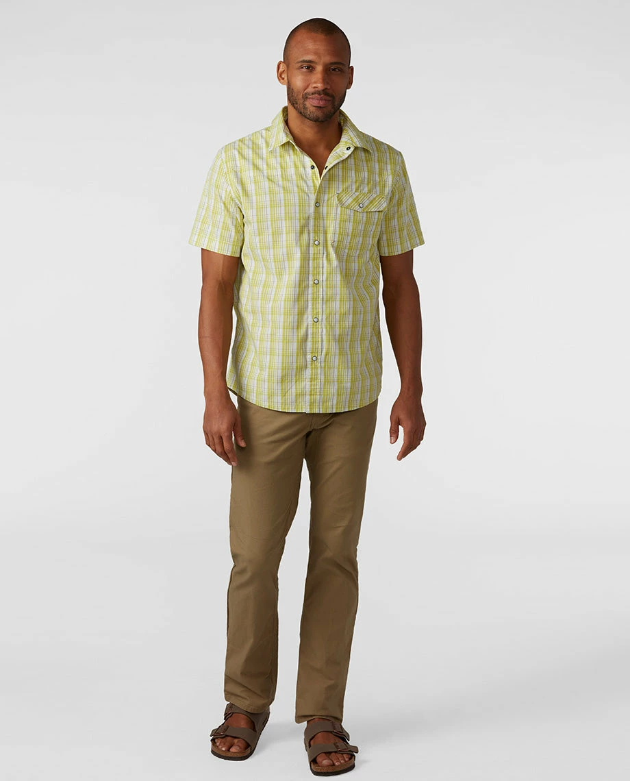 Whether youโre biking the backyard barbecue circuit on a warm summer night or kicking it by the fire after a long day on the trails, the Curtis Camp Shirt is chock full of fuss-free style and comfort. A playful, mountain-inspired take on the classic woven shirts of western ranch culture, the Curtis features a durable yet soft woven fabric with four-way stretch, pearl-snap buttons and crisp finishes for a subtle nod to our Wyoming roots.