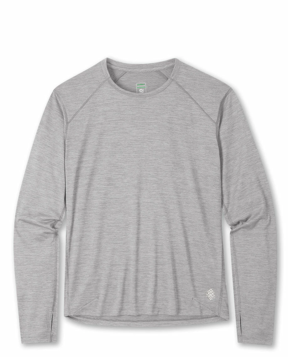 High mountain, high aerobic activities demand both exceptional wicking and exceptional cooling. Our long-sleeve tech tee delivers both dynamically due to Floeโข fabric that wicks and cools more aggressively as body heat climbs to regulate temps during runs, rides or climbs. The fabric is technical but the fit is not too tight or constrictiveโinstead finding middle ground whether going packless or hefting a heavier load to a high point. On-seam thumbholes keep arms down, subtle drop tail adds coverage on the bike while reflective hitsโin both threads and labelsโadd visibility. Anti-odor keeps it smelling mountain fresh.