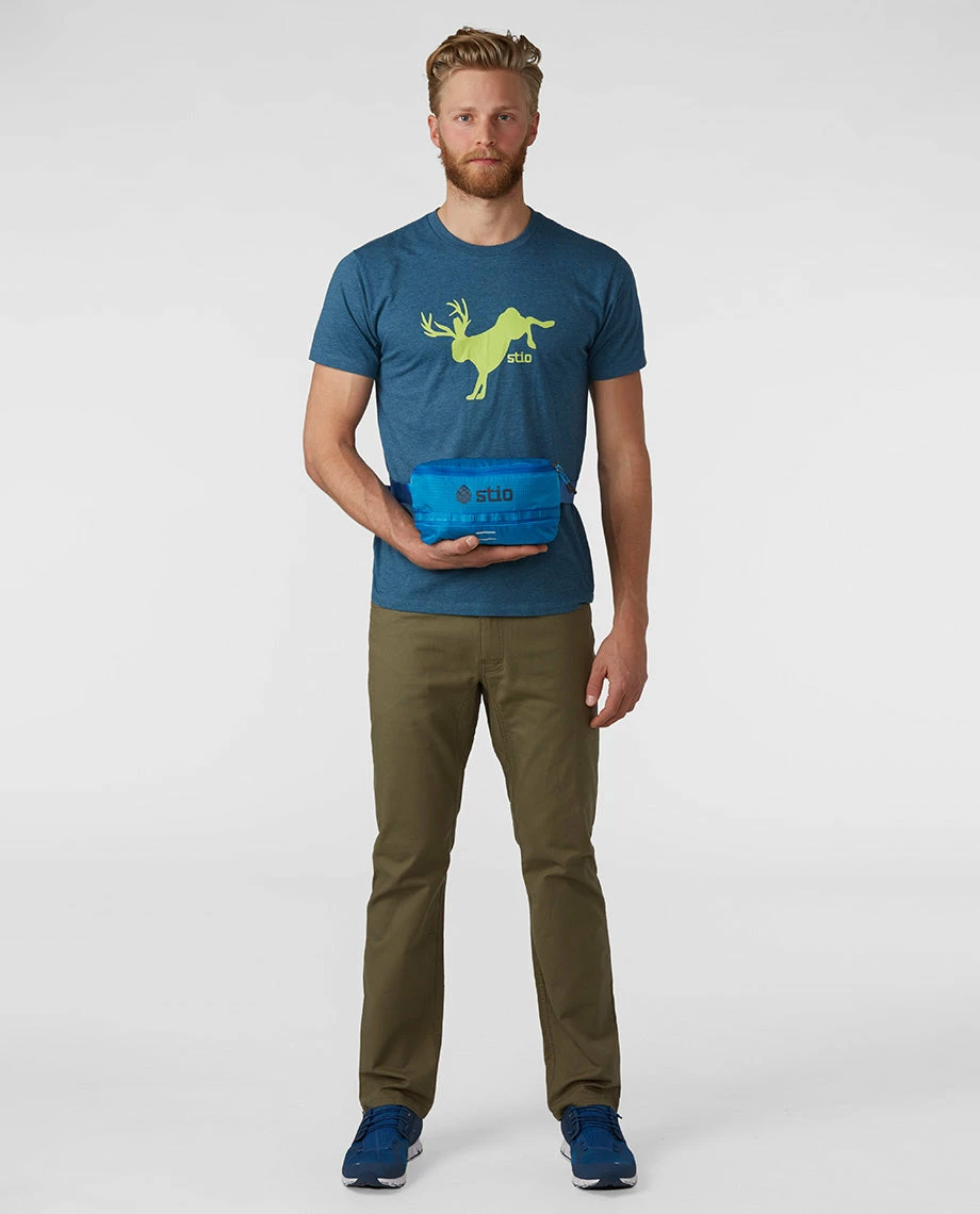 After-work trail ride or short, steep scramble, our hipster packs in the out-and-back essentials then stows them securely against your lumbar for better balance, breathability and range of motion in uneven terrain. Built with recycled, Ultra Tear Strength-coated triple ripstop Robic® nylon, the internal three-liter capacity fits a Nalgene® and a light shell — or three adult beverages to make that sunset viewpoint even sweeter. Daisy chains enable shed gear to cinch down externally, while the whole pack self stashes into an interior pocket for easy storage. Reflective hits add visibility when rolling tough at dawn or dusk.