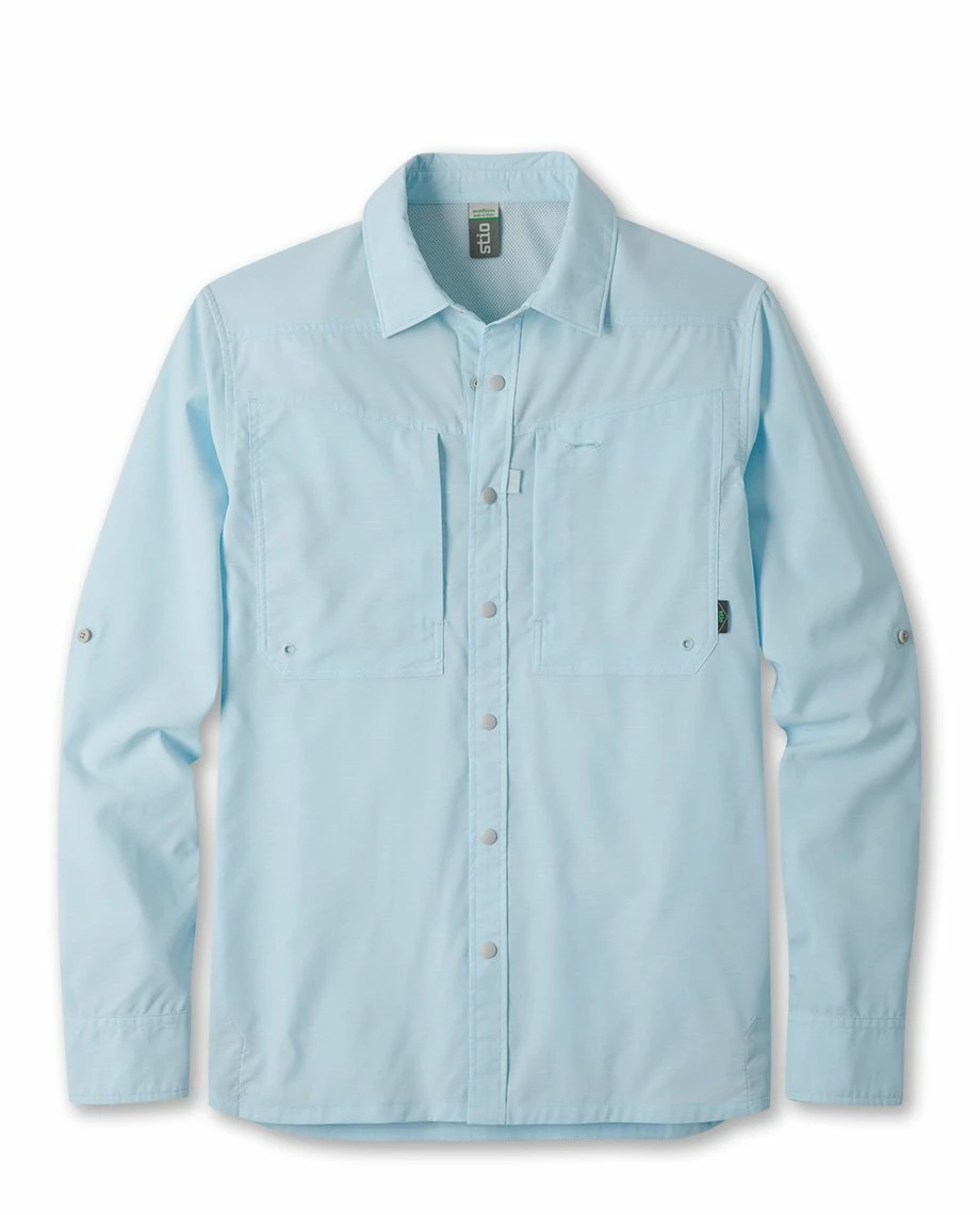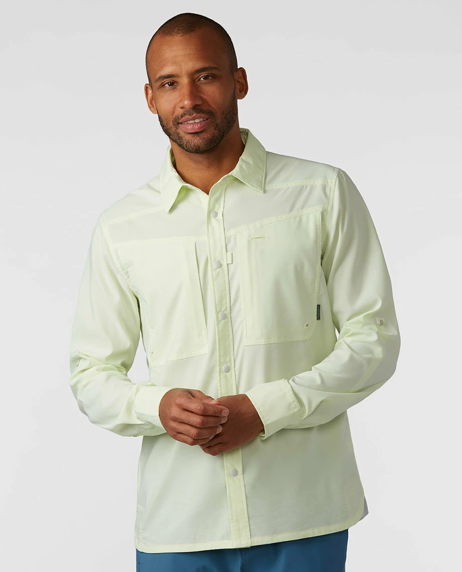 The first Eddy was built for the river, so it was natural to build a fish-focused version for our local float-or-wade culture. For this purpose, we harnessed Confluxโข quick-dry, water-repellent and UPF 50+ ripstop fabric for critical wear area durability, then added mesh side seams and back vents for cool airflow out on the river. Self-draining, fish-on chest pockets stow fly boxes and hold stealth interior mesh pockets for floatant, desiccant or tippet. Dialed in with a sunglass wipe, a hemostat attachment, roll-up cuff tabs and a sunshade collar, the Guide Shirt pulls off a relaxed style that still feels at home cracking refreshments on the tailgate.