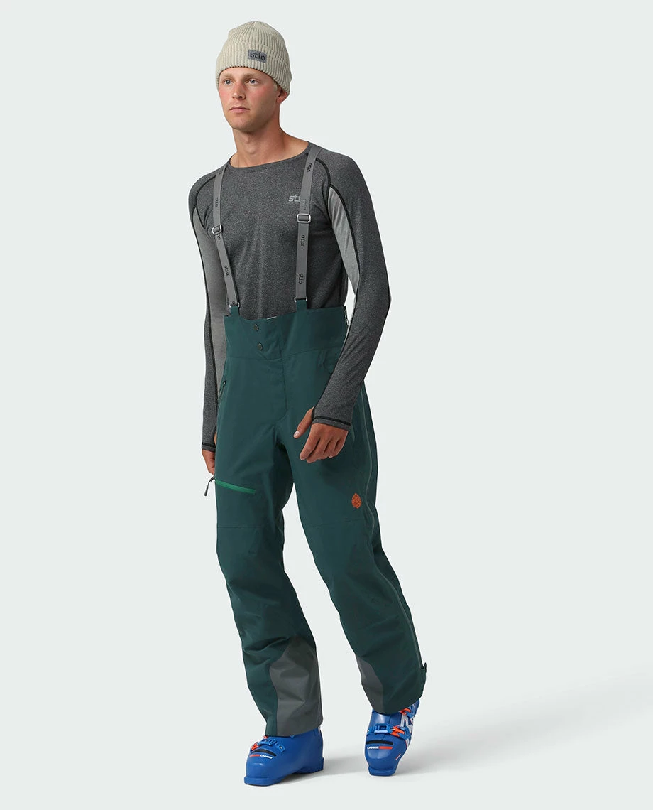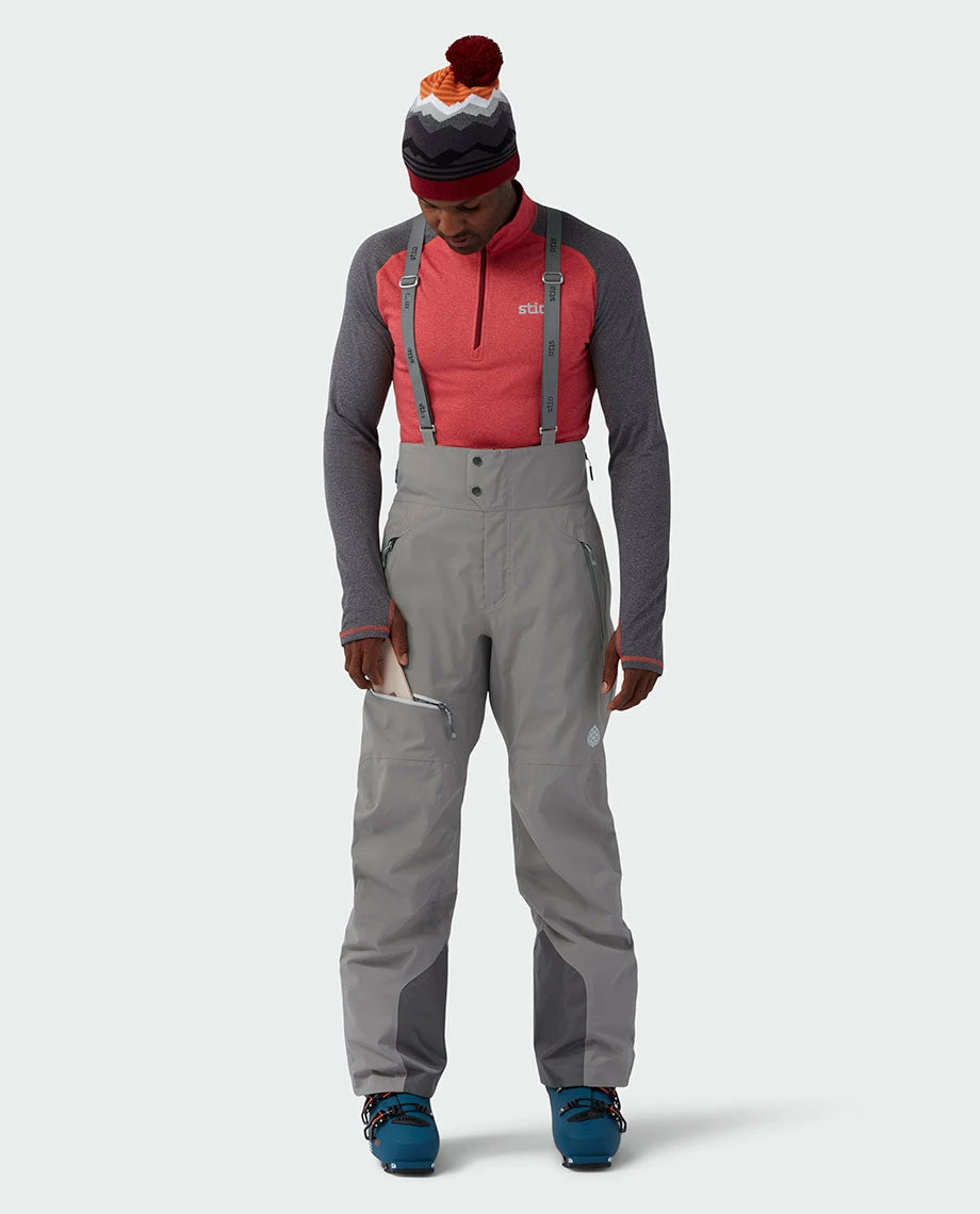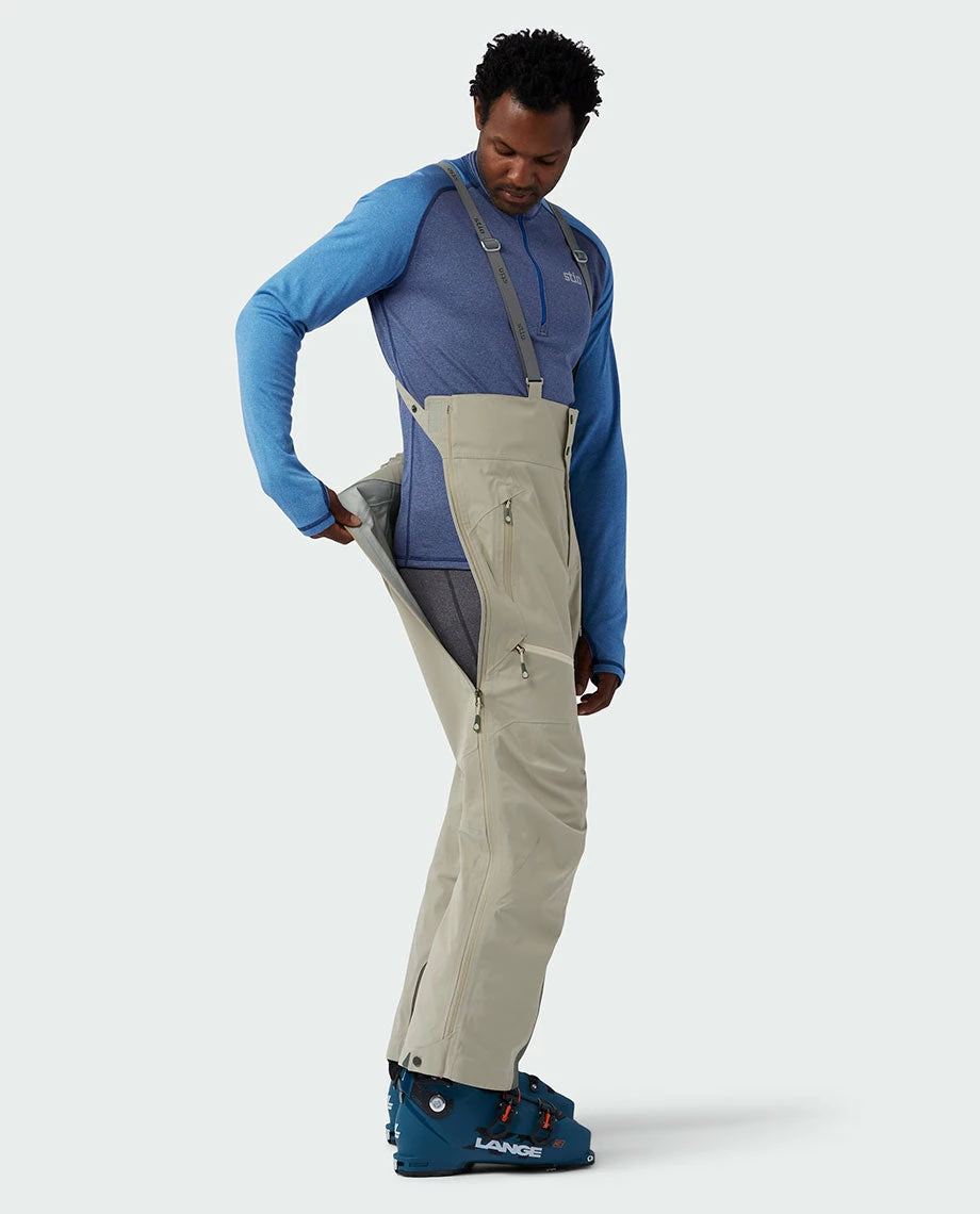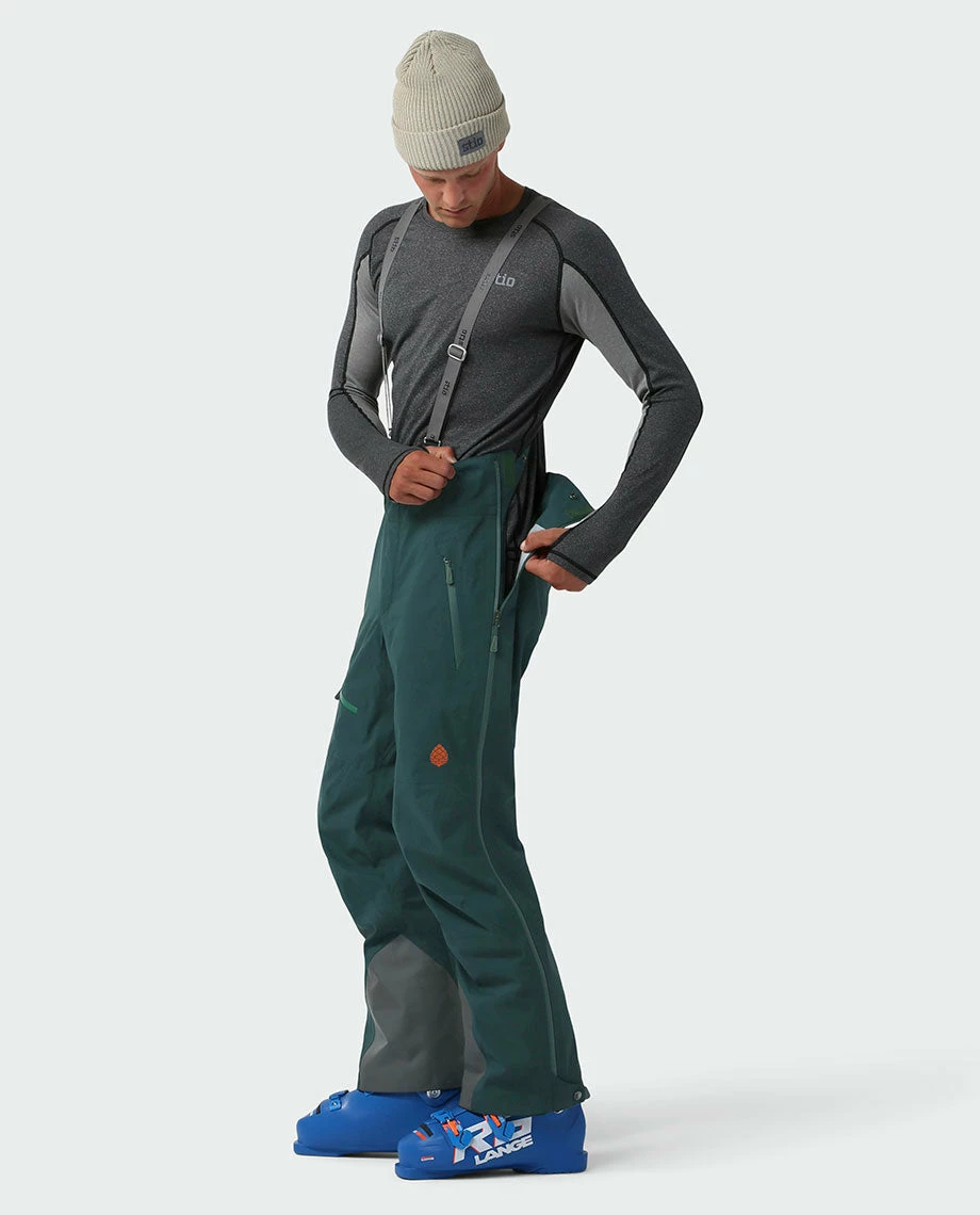 Built for deep snow and steep lines, the award-winning Environ Bib is our fully featured waterproof ski bib that provides premium weather protection on either side of the gate. Our seam-sealed, 3L PeakProof™ Dermizax® waterproof shell fabric is super durable for day-in, day-out use, and the Environ’s high-waist and suspenders provide optimal performance when hiking and ample coverage in the blower conditions you dream about. Side zip vents with YKK® water-resistant zippers let you ditch excess heat and also double as a drop seat. Articulated knees and a gusseted inseam improve freedom of movement on skin tracks and cliff drops, and zip hand pockets and a zip thigh pocket stash your pass, phone and other on-mountain essentials.